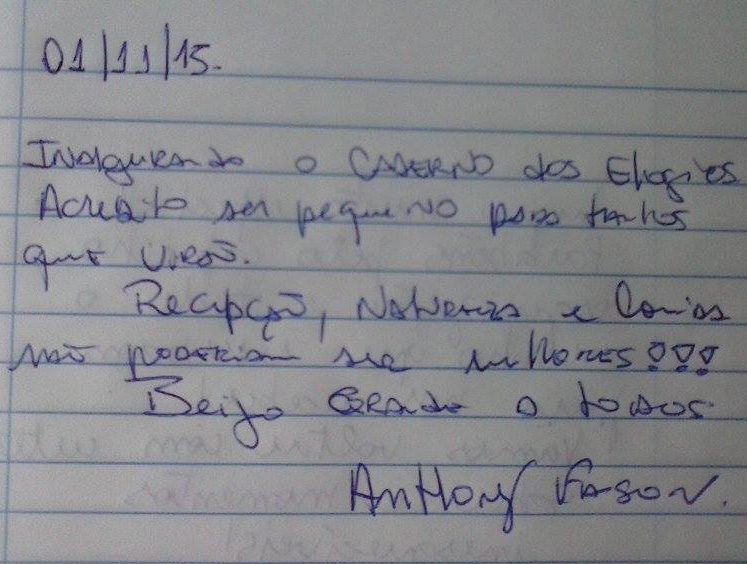 Queríamos agradecer os dias maravilhosos que vocês nos proporcionaram. Ficamos muito comovidos com a acolhida quente e generosa em todos os detalhes. Agradecemos muito também a amabilidade com que receberam a nossa amiga. Foi um presente ter conhecido a Amadamata. Acho que a amiga finlandesa de vocês foi muito sábia em ter escolhido para esse lugar quem o amasse. Parabéns a você, Dr. Carlos, Fabiana, Manuela, Thiago e Tuca por honrarem tanto essa missão.